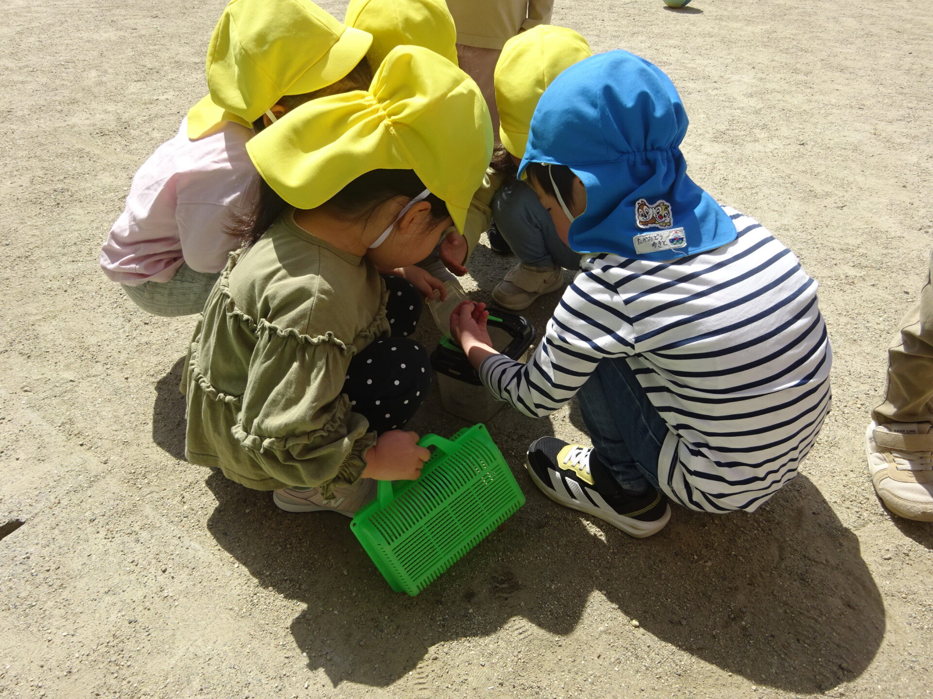 ・年長組のお兄さんが、てんとう虫を見せてくれたよ!「ダンゴムシもいるよ」