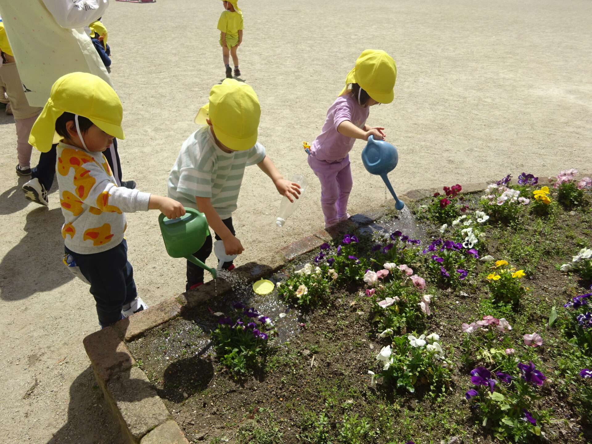 ・花に水をあげながら、「きれいにさいてるね」と声が聞こえてきました。