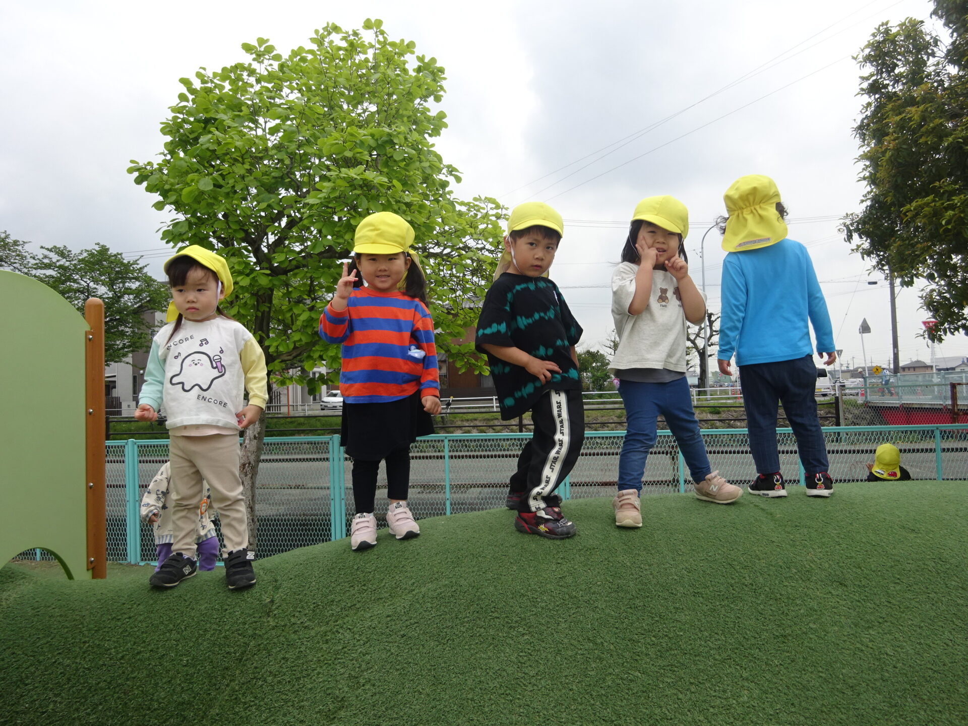 年少組での園生活が始まりました。ドキドキワクワク毎日楽しく過ごしています。お兄さんやお姉さんに遊んでもらったりしながら元気いっぱいの子ども達です!