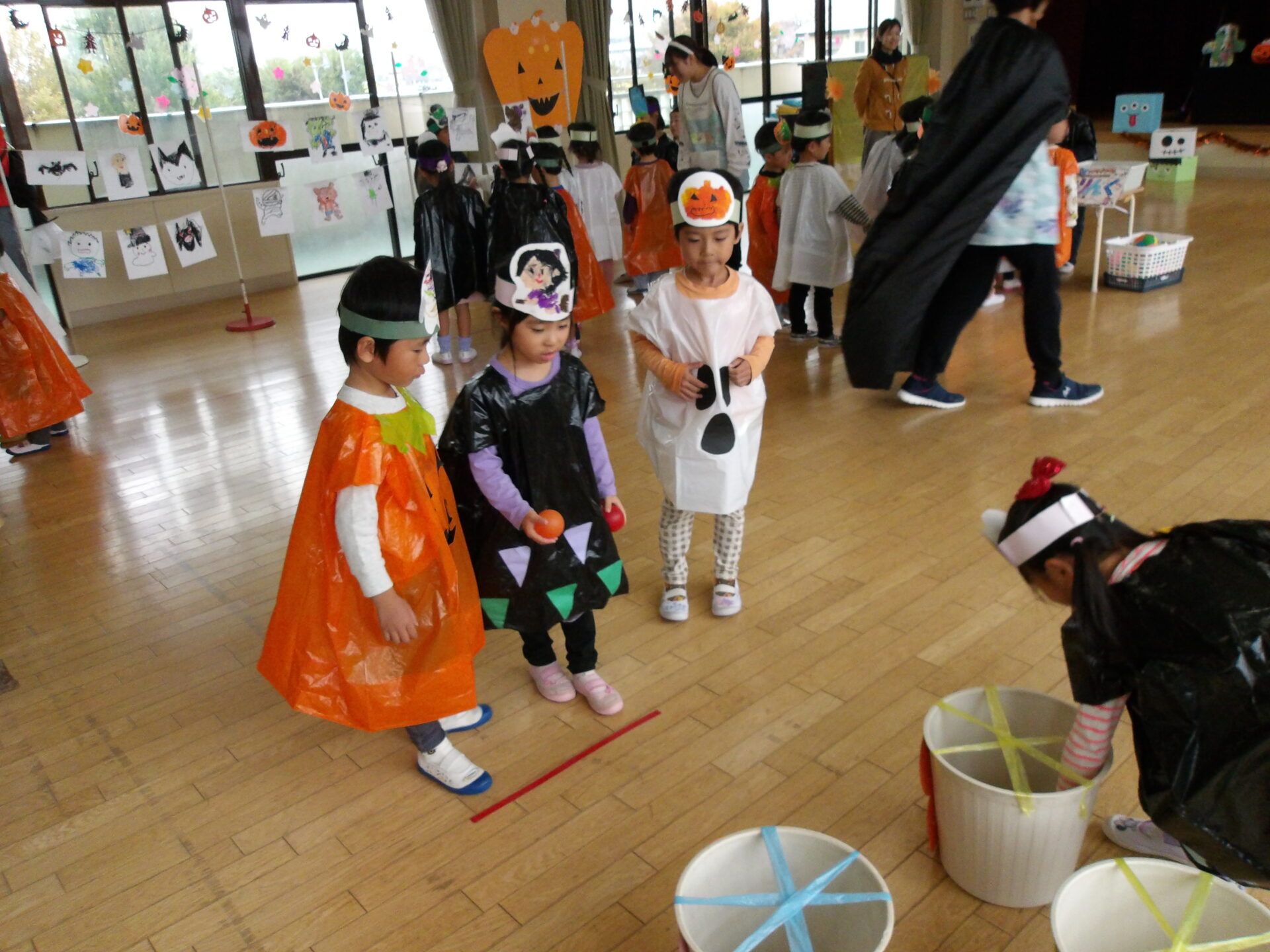 ・完成した玉入れをハロウィンパーティーでたくさん楽しみました☆