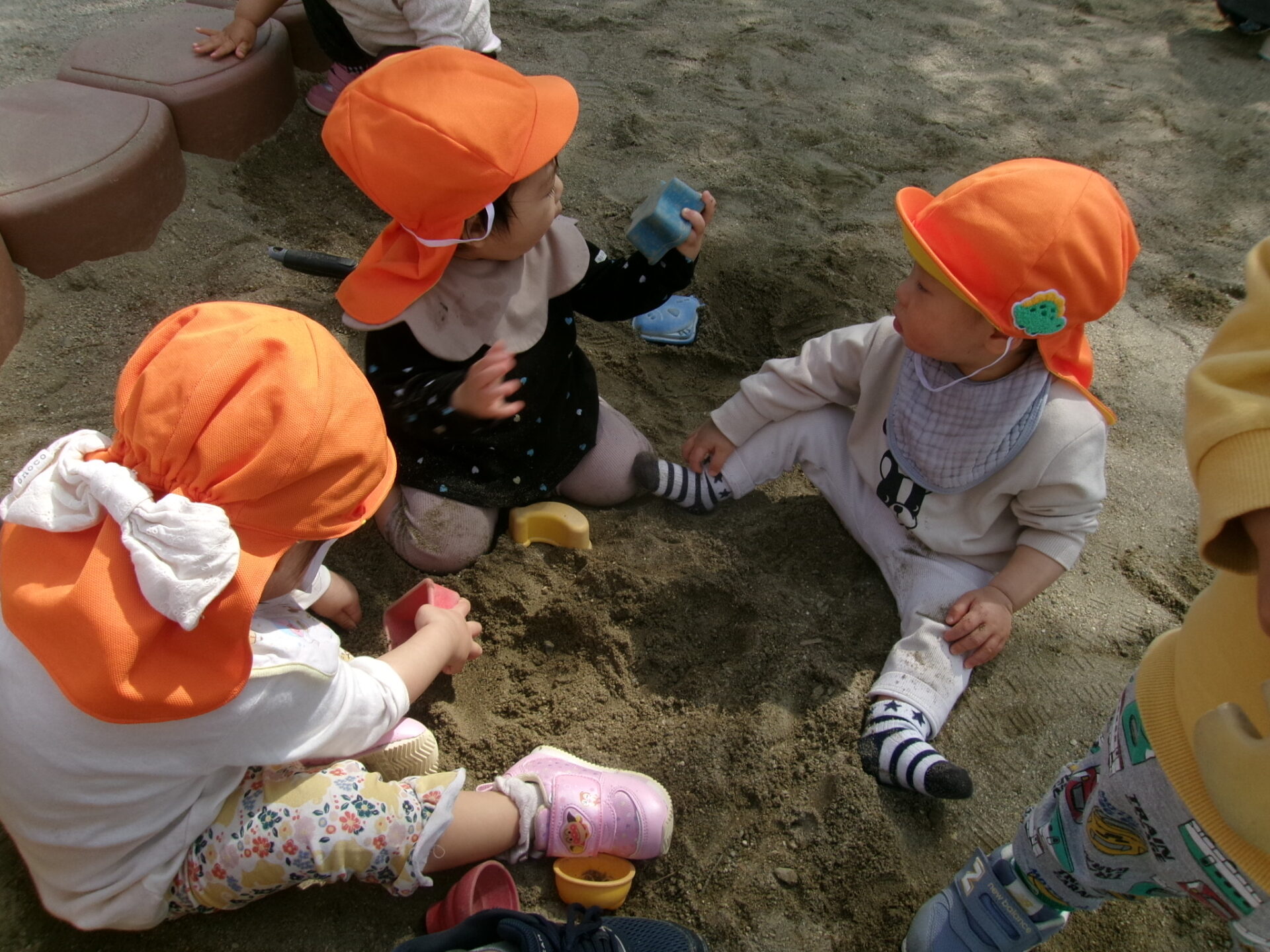 ・砂の感触を楽しんでいます♪直接触ったり、スコップですくっていました☆