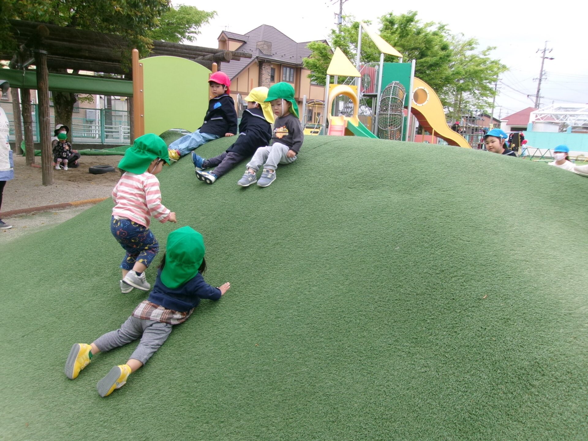 ・友だちと築山に登ったり滑ったりしています!繰り返し遊ぶのが楽しそう♪