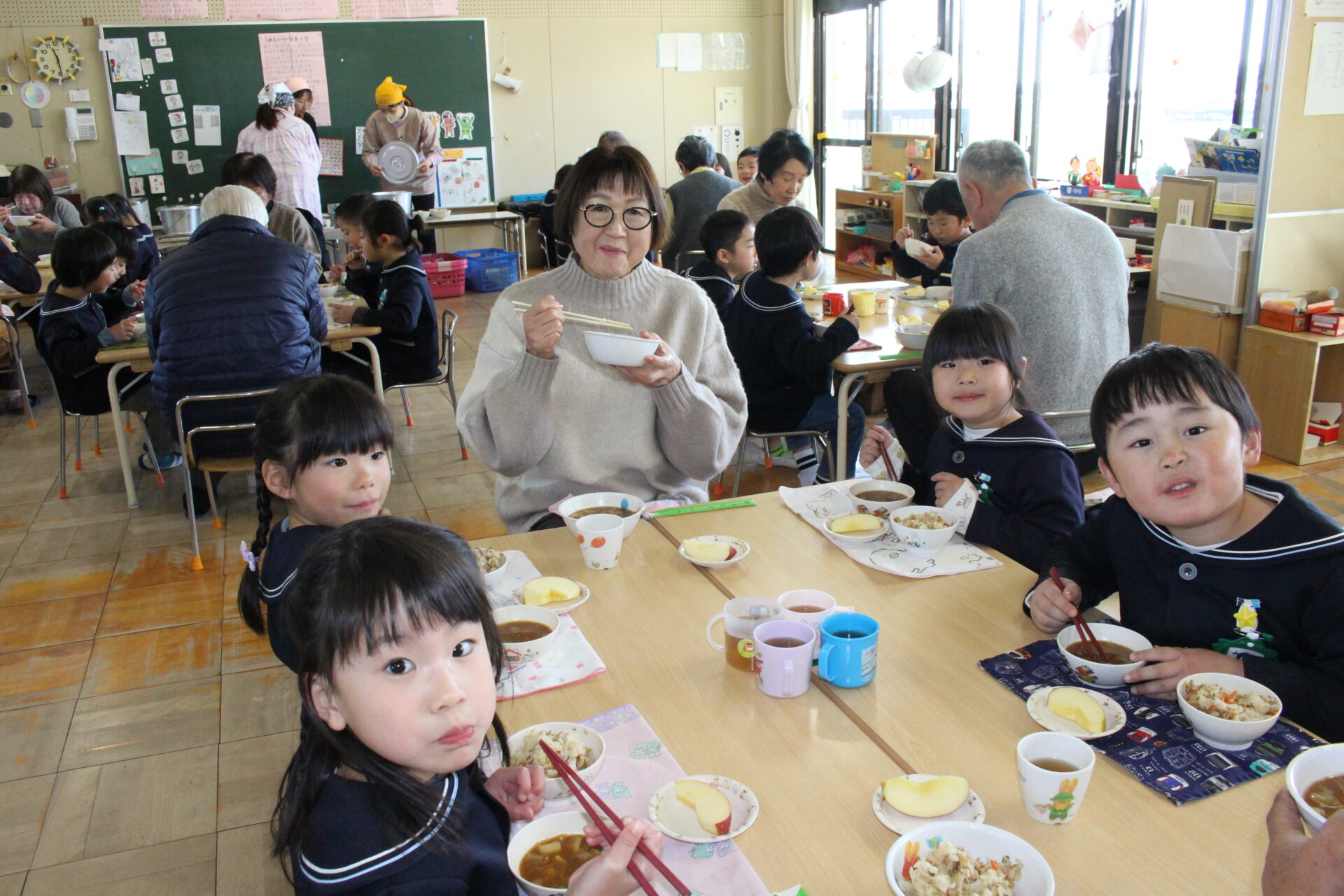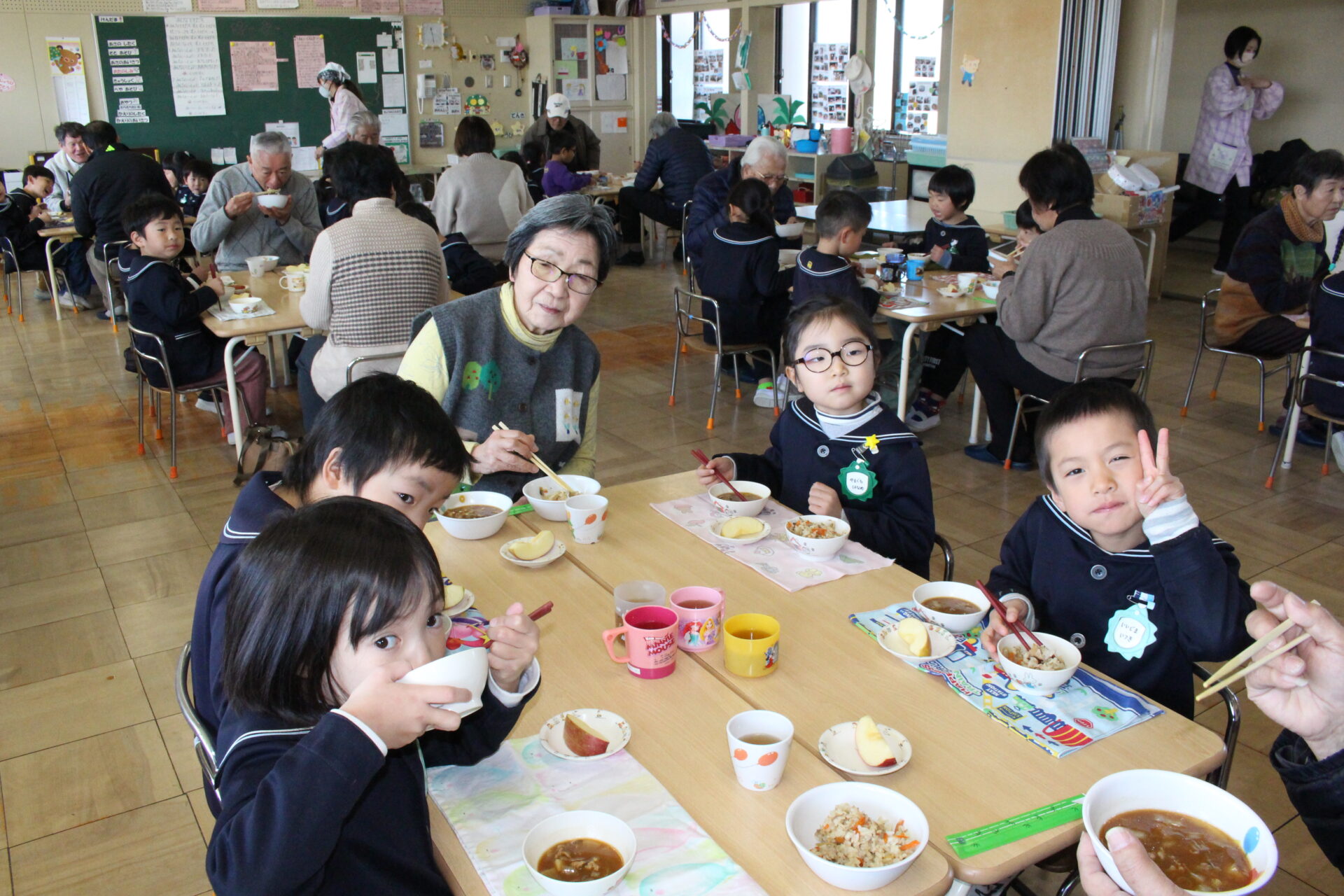 地域の方々に、今年1年お世話になった感謝の気持ちを伝えたり、歌や踊りを披露しました。また、一緒に会食をして楽しいひと時を過ごしました。