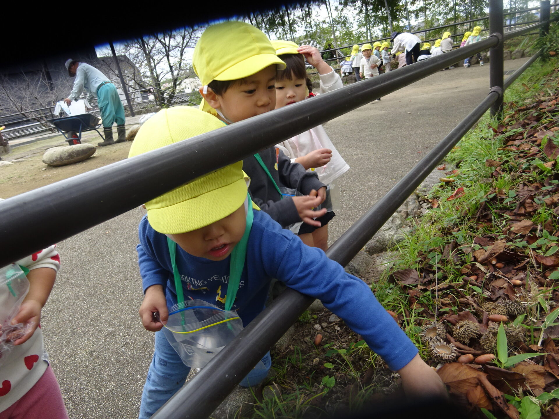 ・「どんぐりみーつけた♪」形が違うどんぐりを見つけて大喜びでした(^^♪