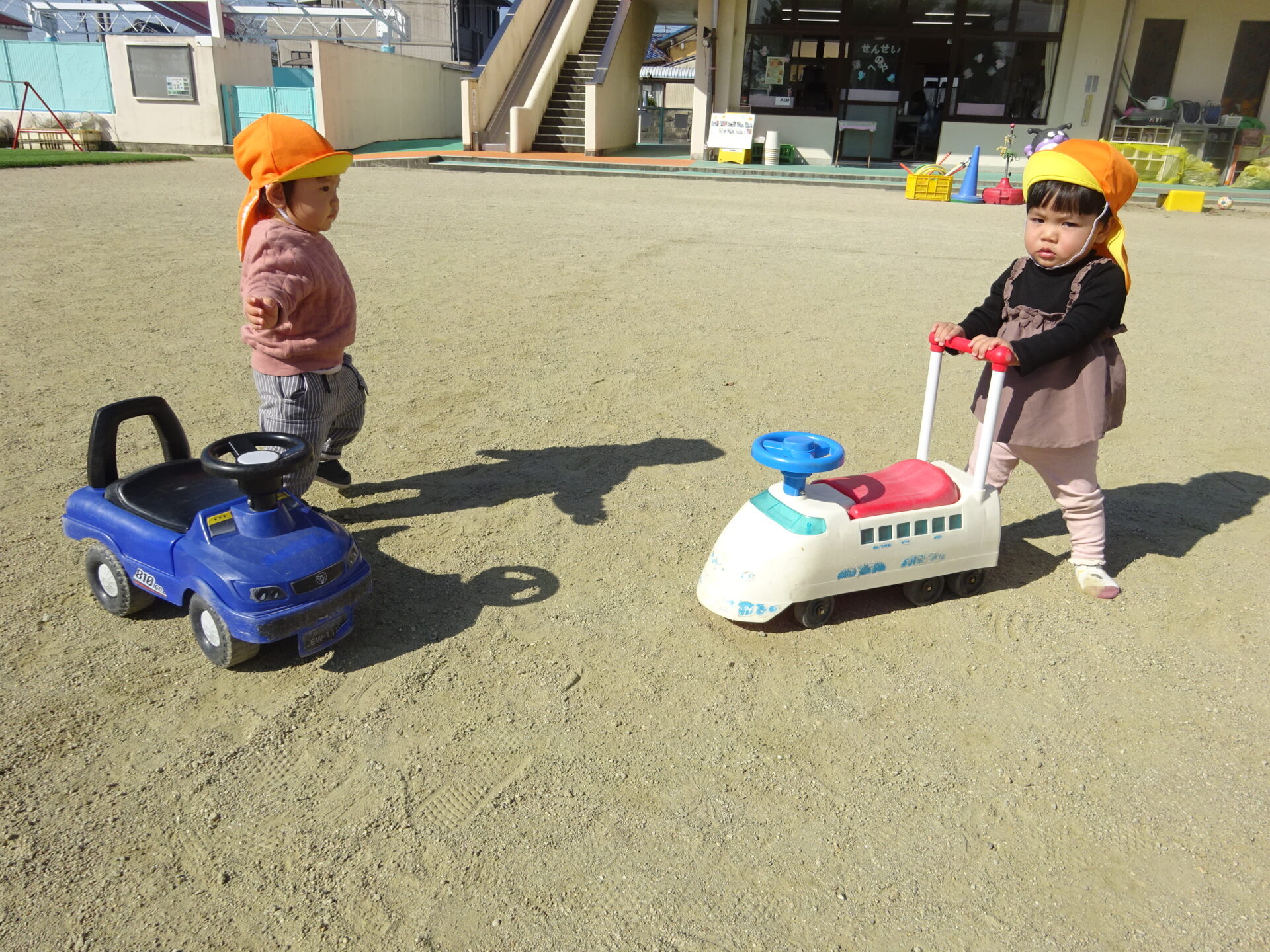 ・コンビカーを押して「1・2!1・2!」(^^)砂遊びや滑り台でも楽しく遊んでいます♪
