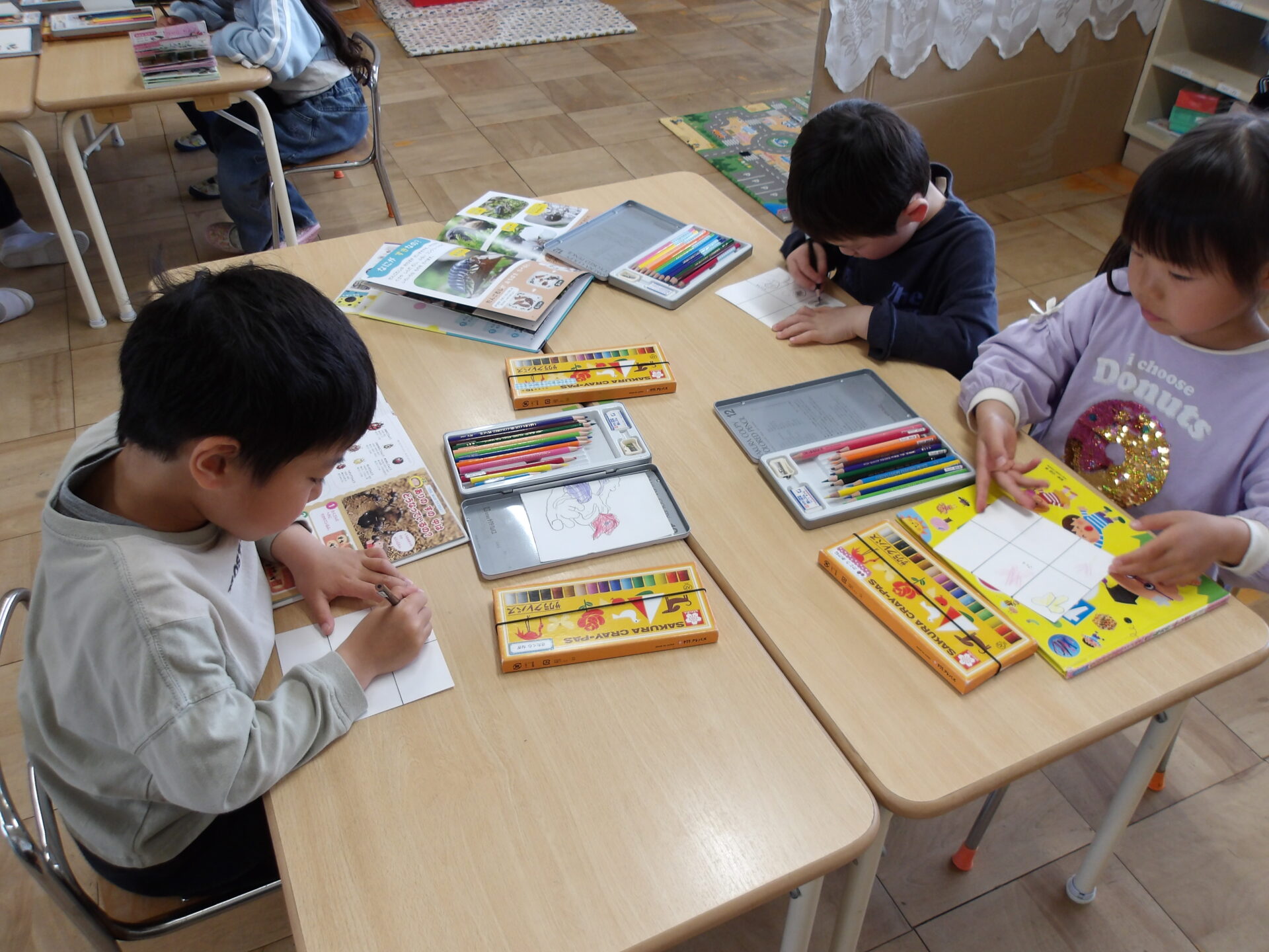 ・図鑑や本を見て「たんぽぽにしよ!」などと夢中でカードにかいていました!