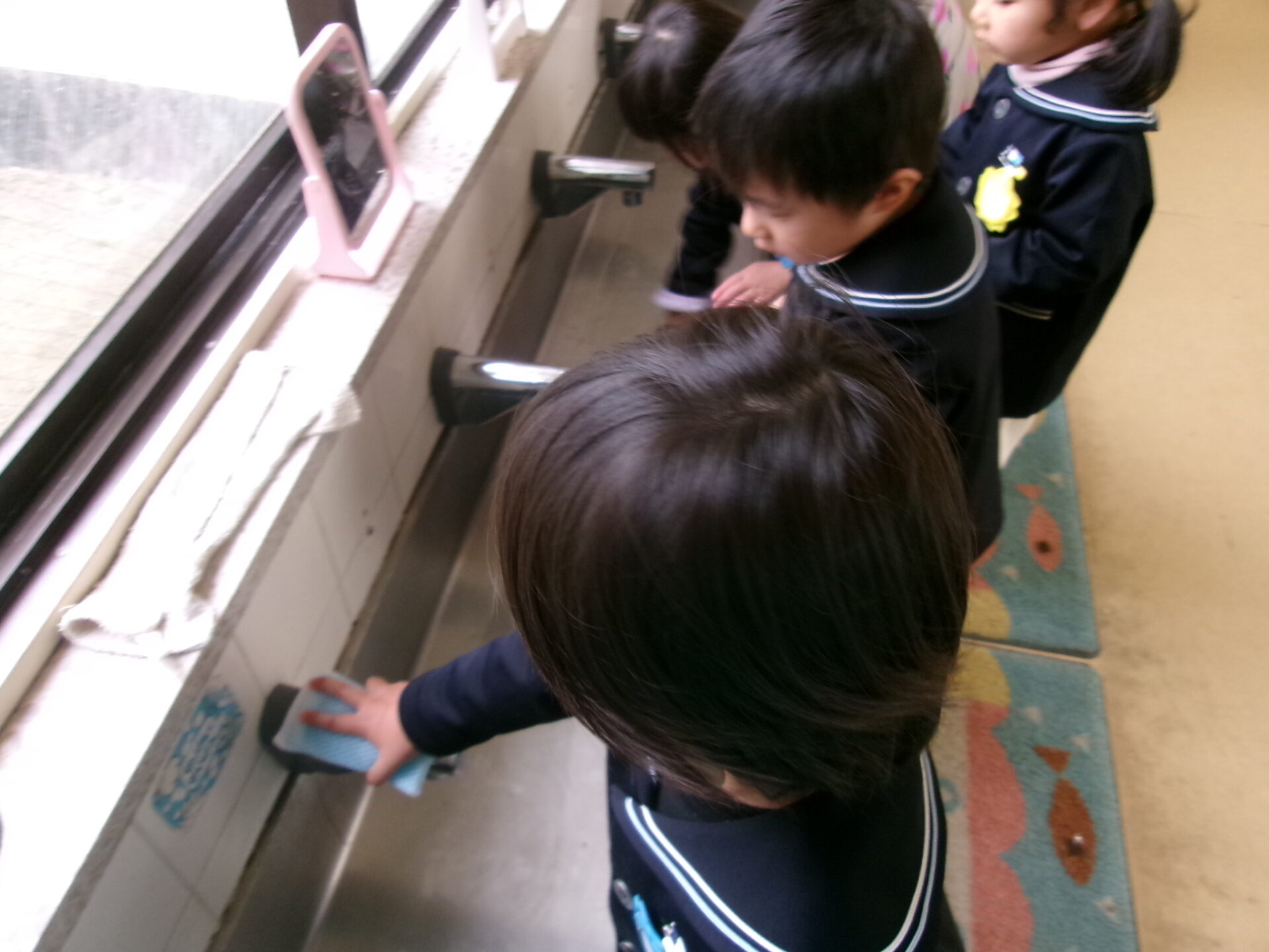 ・おやつの後に、きらきらタイム(掃除)を行っています。