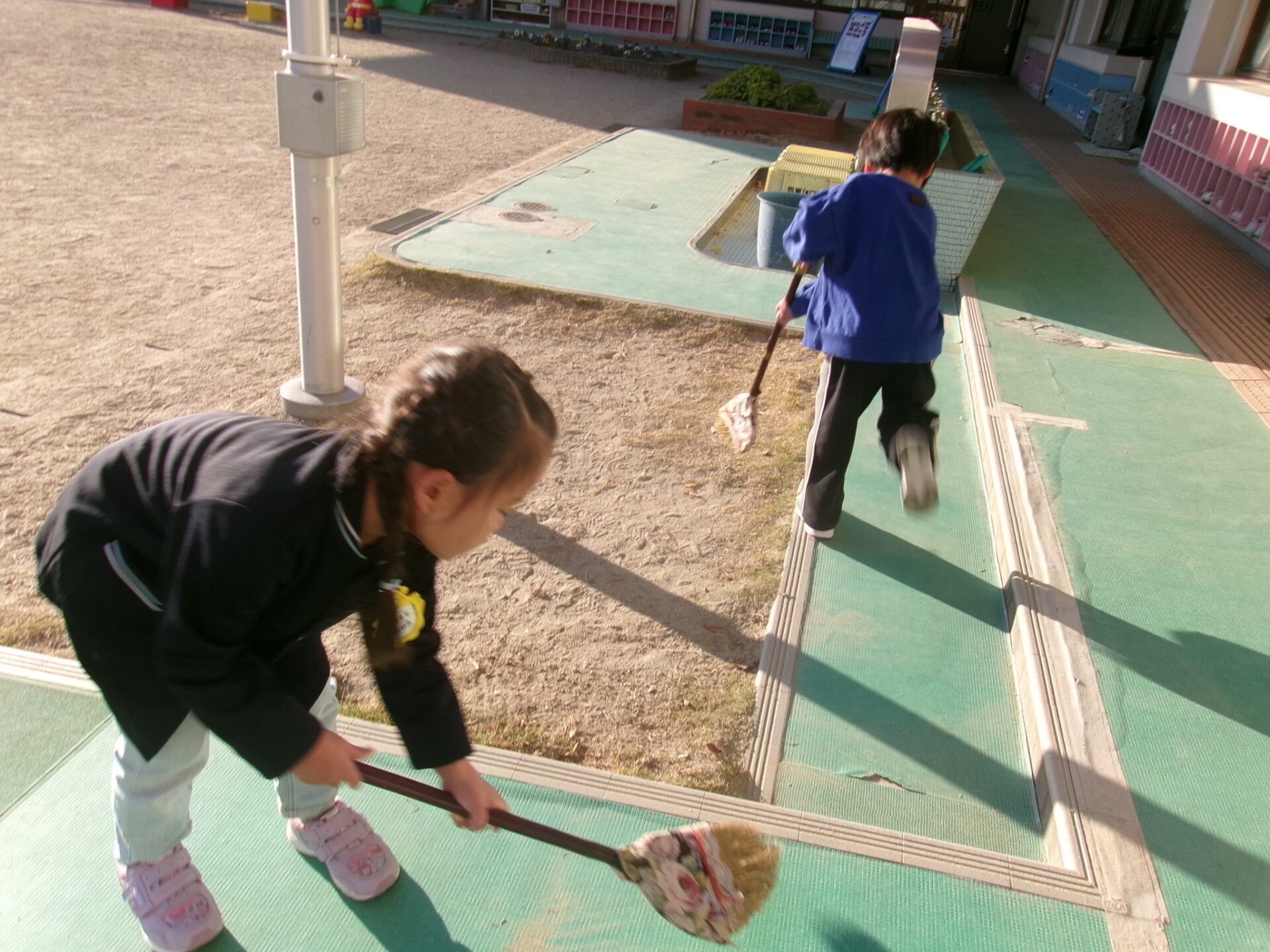 ・部屋掃除での、ほうきの使い方も上手な子ども達です♪