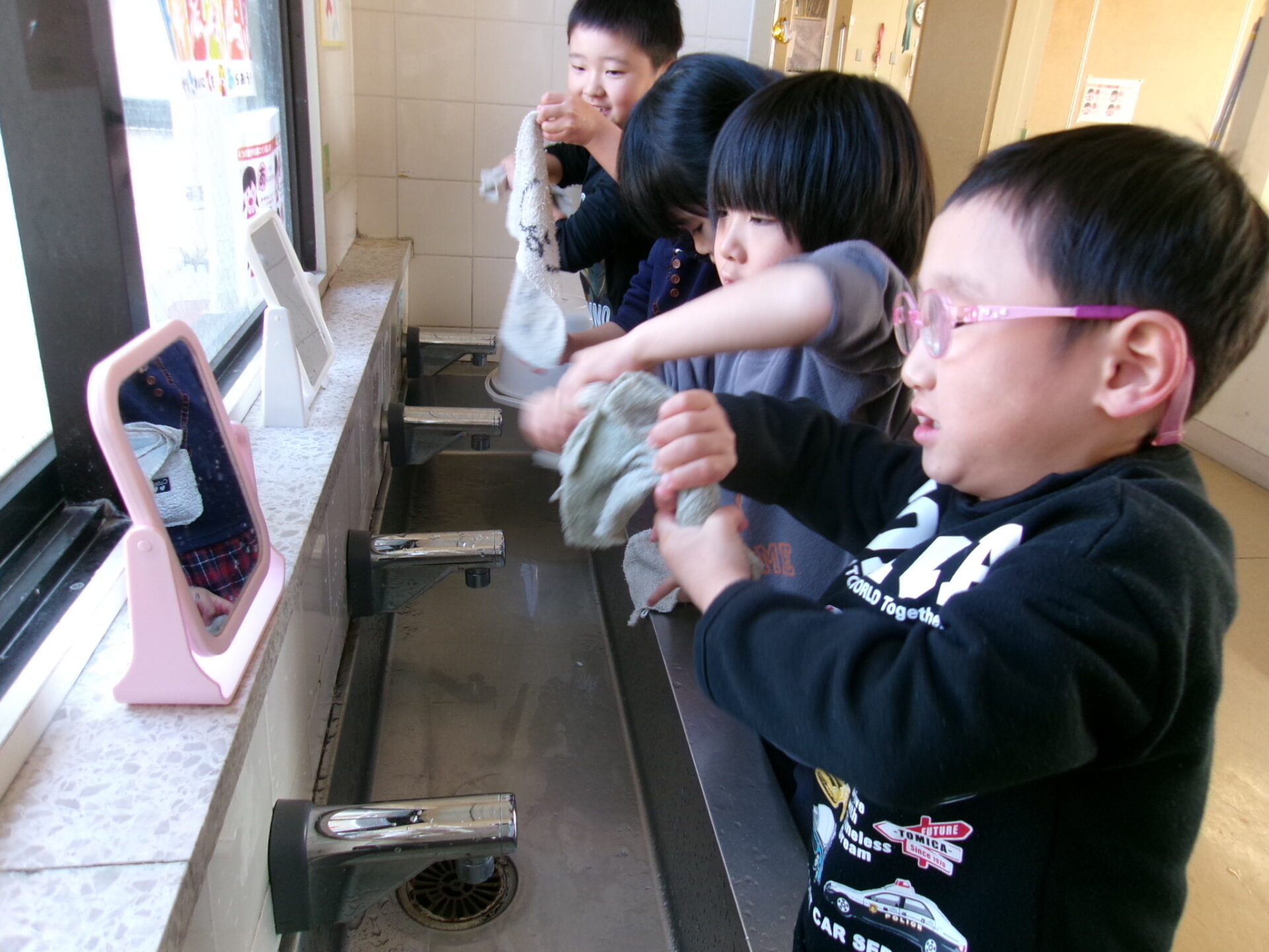 ・使った雑巾も洗って絞ります。ギューッと絞ってね(*^^*)