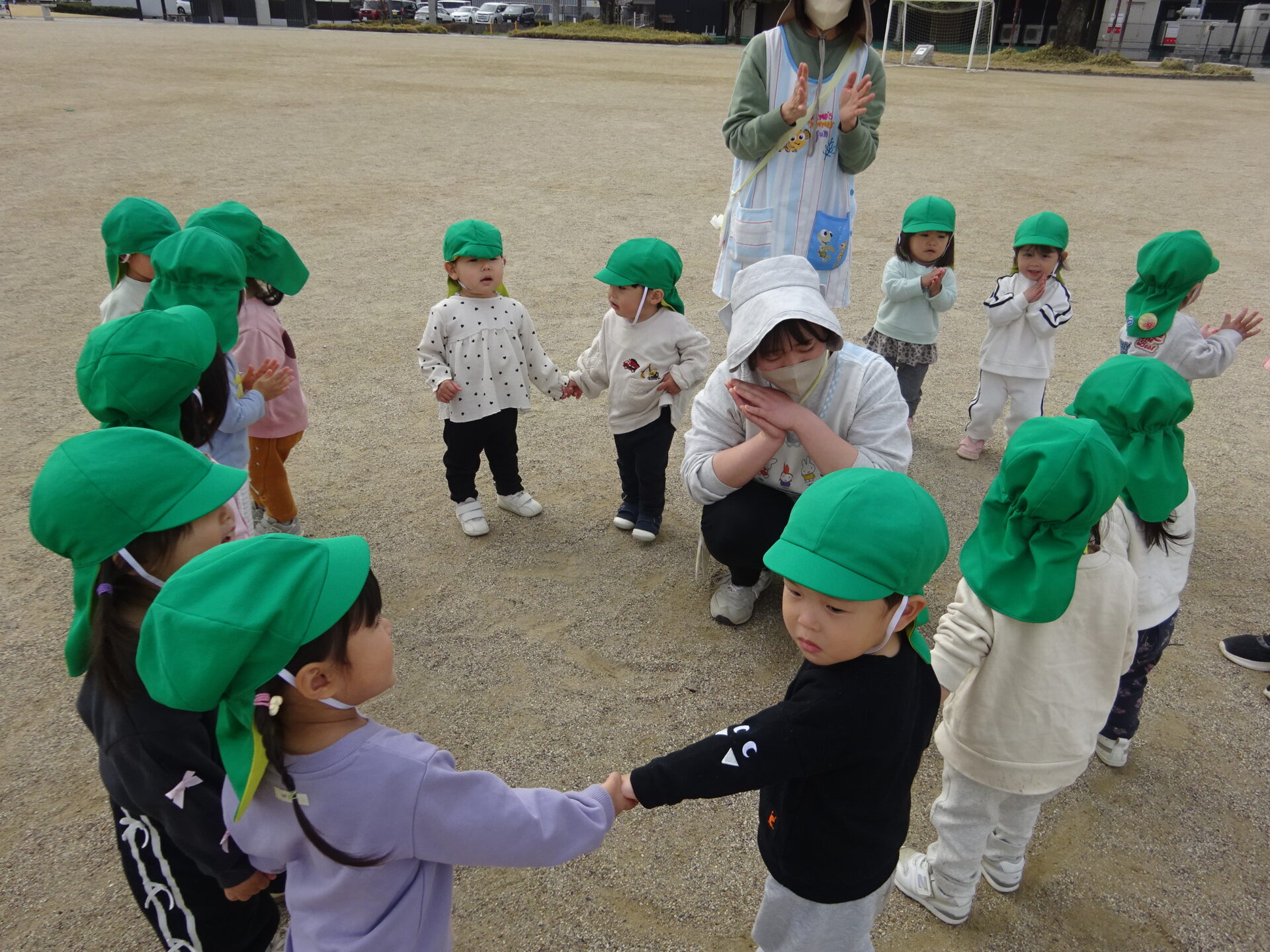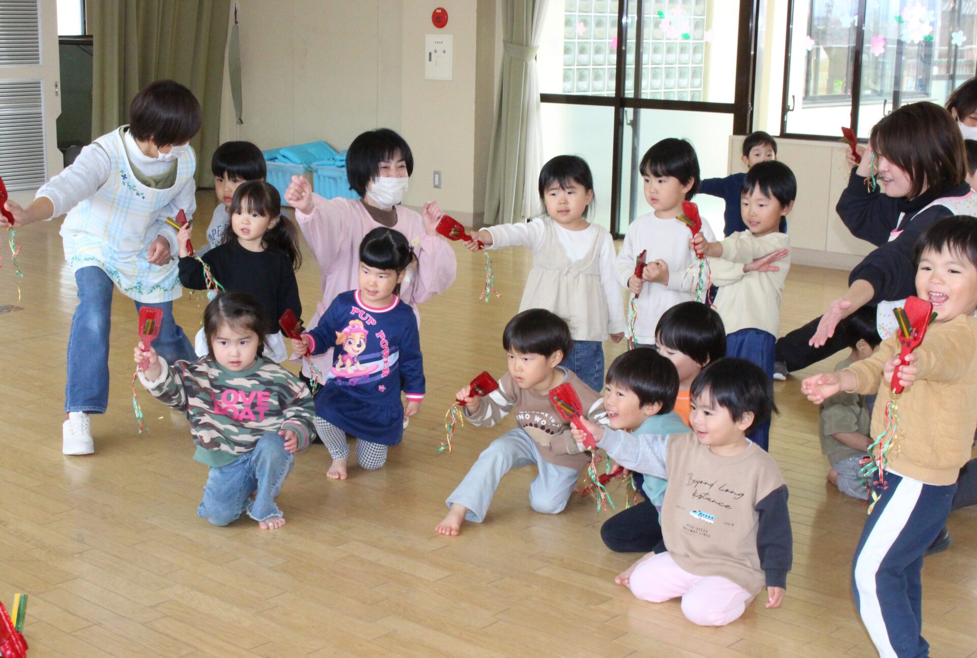 ・「むっくりくまさん」の集団遊びを気に入り、みんなで一緒に楽しんでいます♪