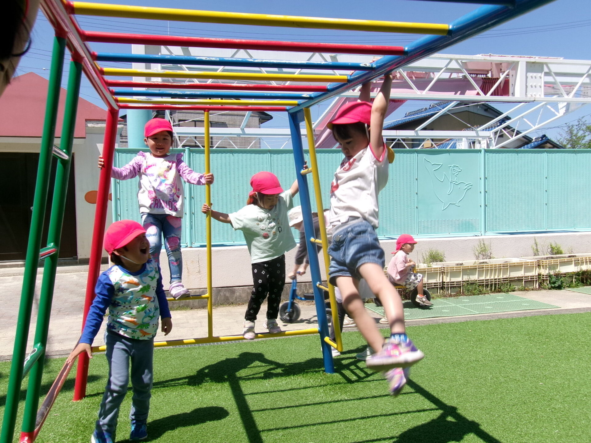 ・色んな遊び方ができる雲梯!「先生、見てて!こんな事も出来るよ!」