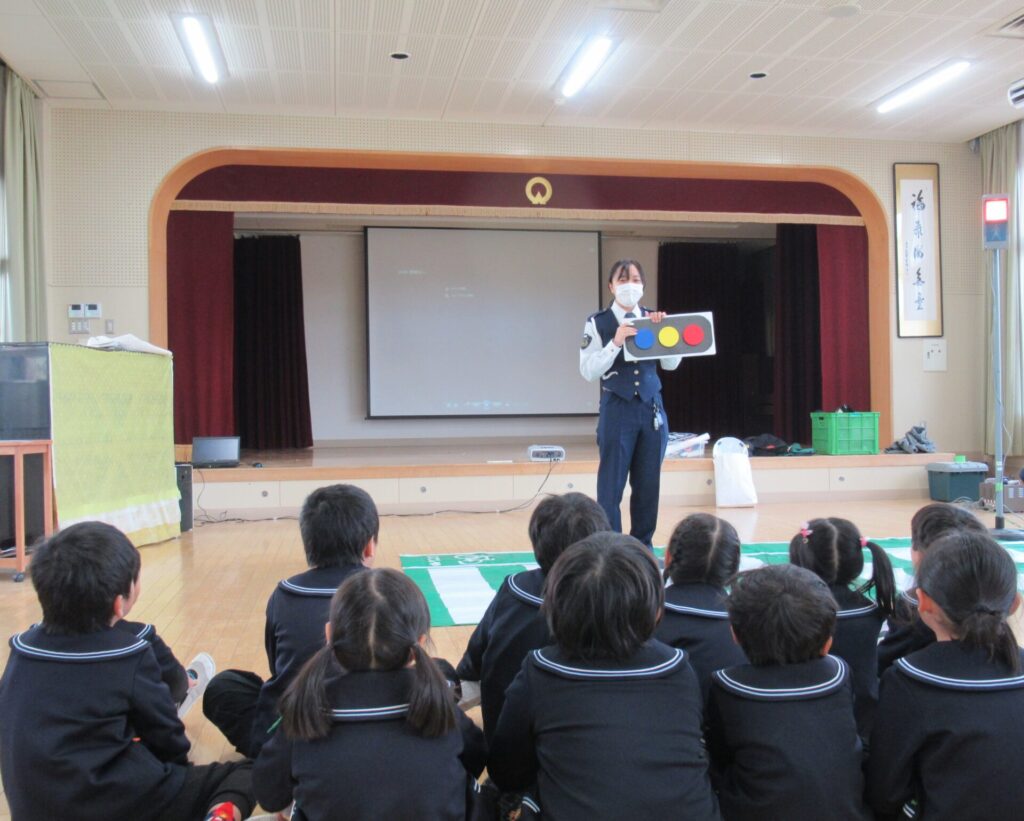 子ども達は、手を挙げて横断歩道を渡る練習をしたり、おまわりさんの質問に元気よく答えたりと、 とても真剣な表情で取り組んでいました。