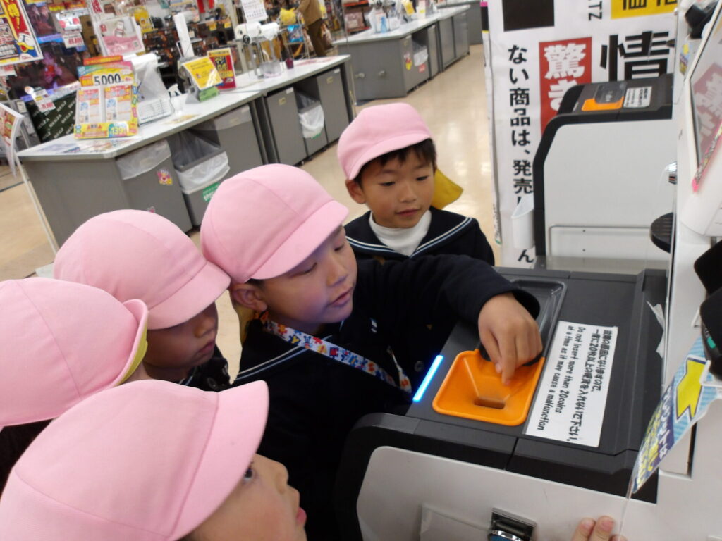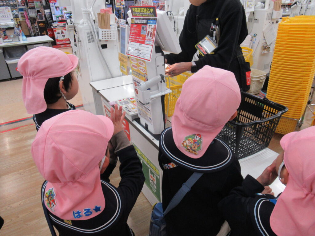 レジでは自分たちで商品を渡し、お金を払いおつりを受け取るという流れを実際に体験しました。 お金の使い方や買い物の仕組みを学ぶ、大切な機会になりました。