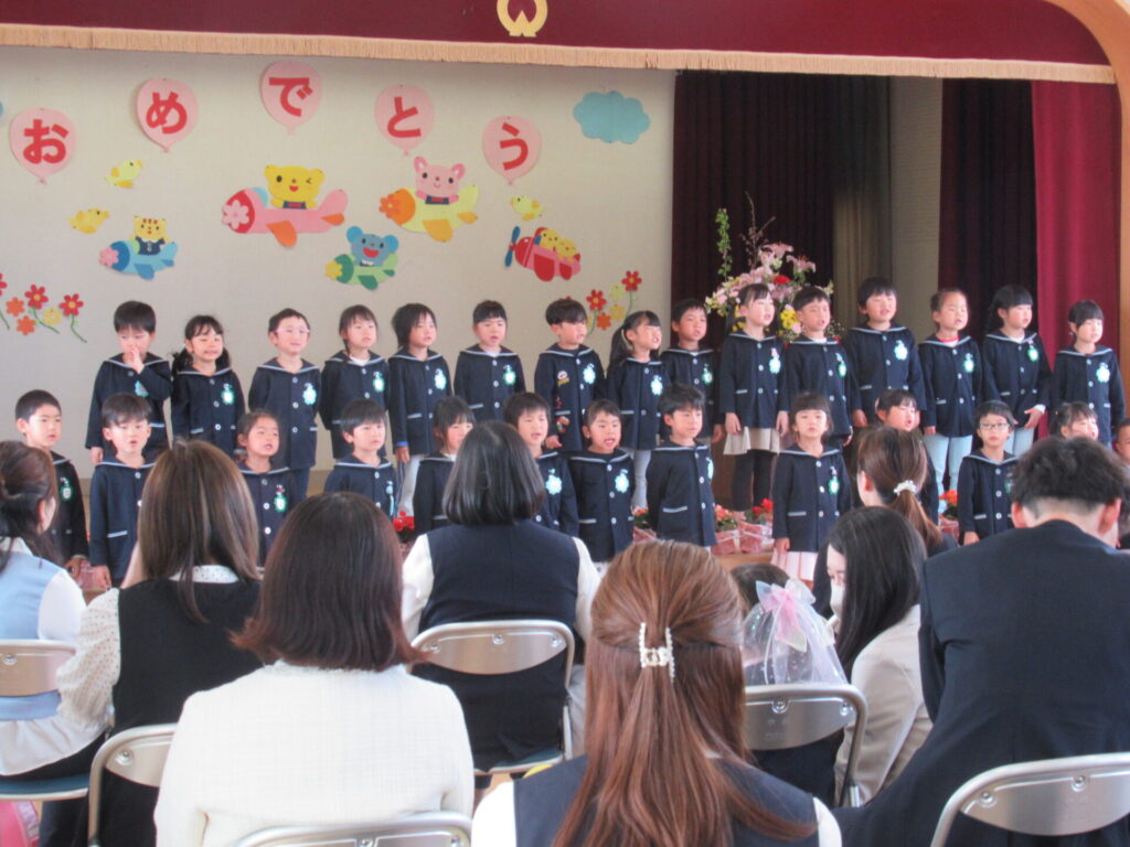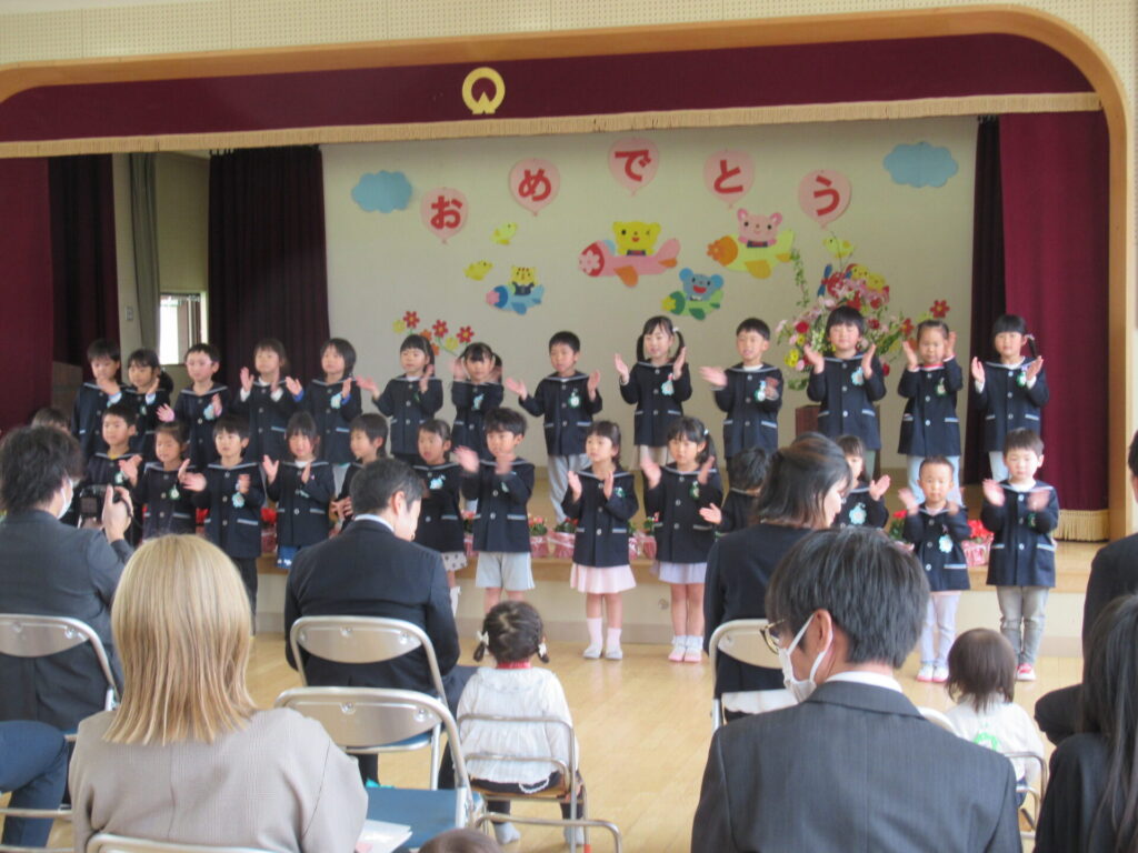 在園児を代表して年長児がお祝いの歌を披露してくれました♪♪♪ 「これから一緒に遊ぼうね」という優しい気持ちのこもった歌声は、きっと新入園児のみなさんにの心にも届いたはずです。