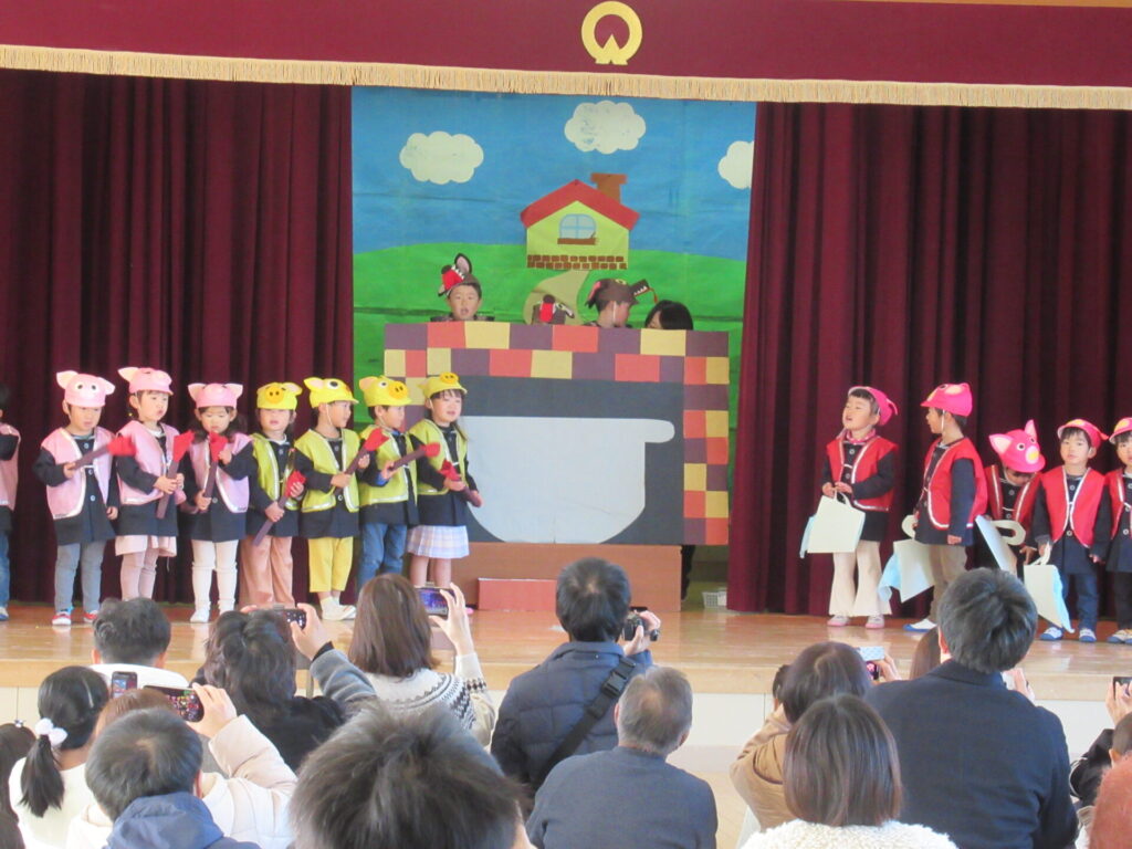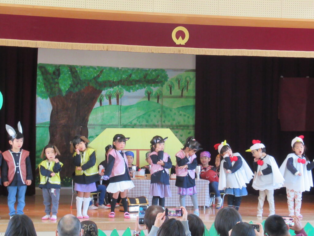12月6日(土)に子ども達が楽しみにしていた劇遊び発表会がありました。緊張しながらも、友だちと力を合わせて役になりきる姿は、とても頼もしく感じました。台詞を言ったり、歌を歌ったり、ちょっぴり恥ずかしくなったり…そのひとつひとつが子ども達の成長につながっています。